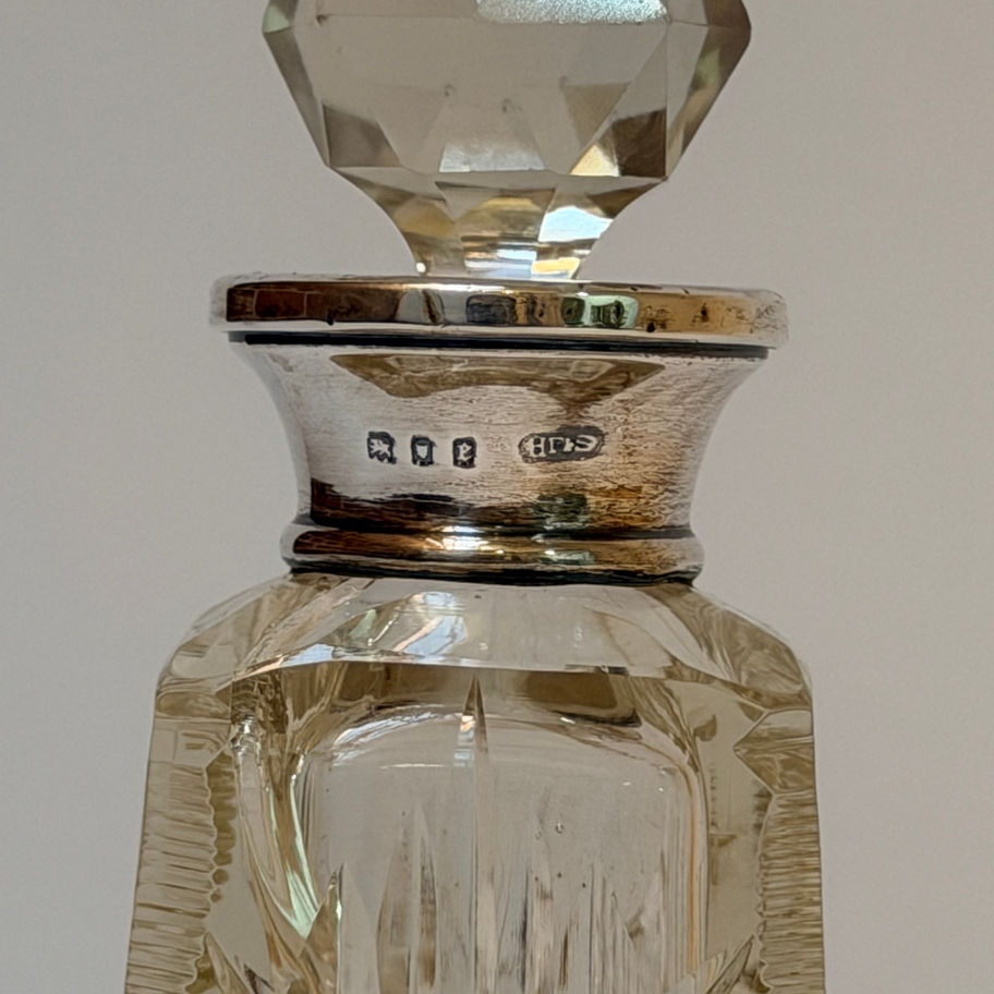 Timeless and elegant, this antique perfume bottle features a beautifully crafted glass body topped with a sterling silver lid.