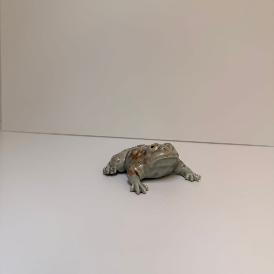A charming small ceramic frog ornament, perfect for adding a touch of character to any space. With its smooth glazed finish and cute design, this little frog makes a lovely decorative piece for a shelf, desk, or garden-themed display.