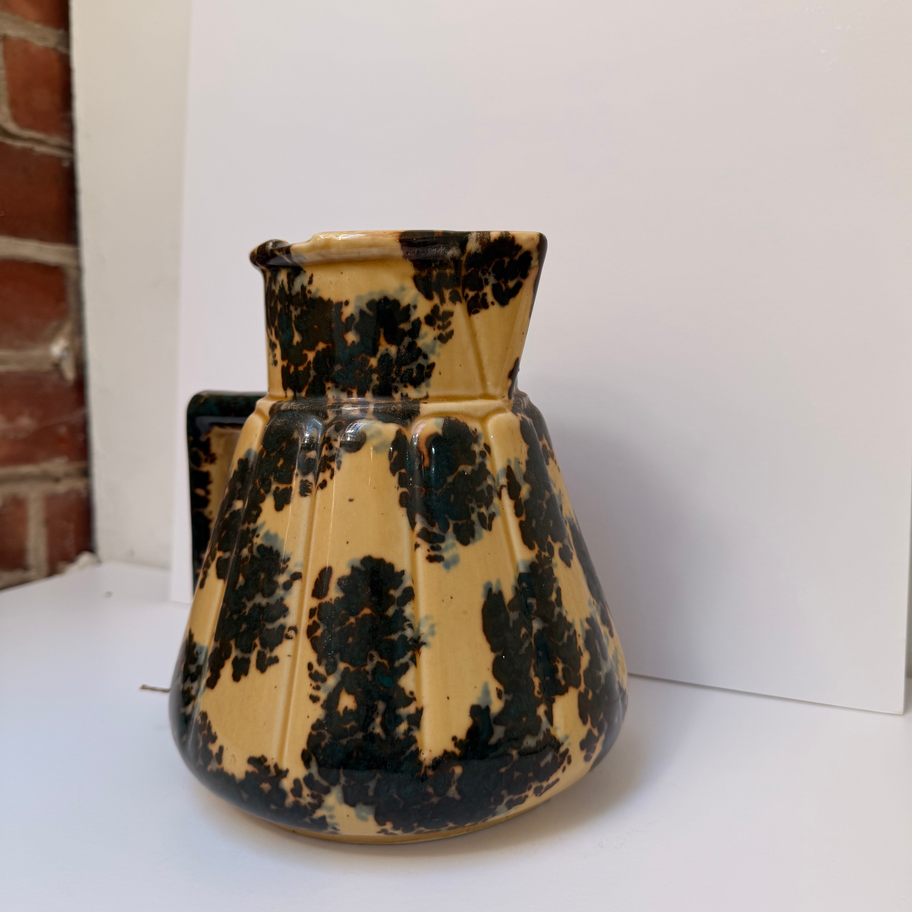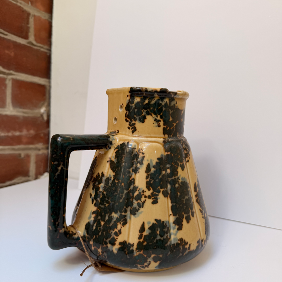 Handcrafted pottery jug with earthy glaze and organic pattern. A lovely rustic piece for display or use. Excellent condition.