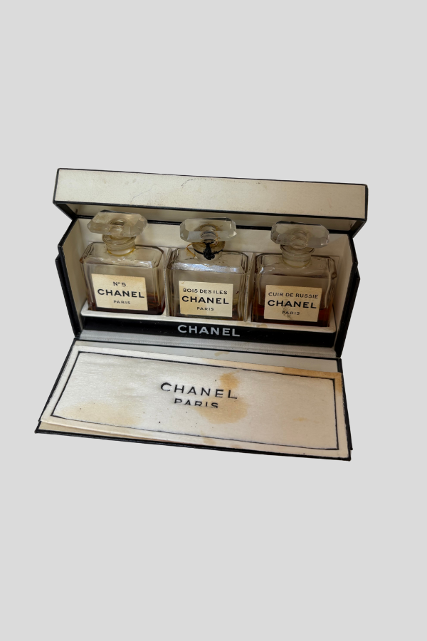 A stylish set of authentic vintage Chanel perfume bottles—perfect for décor, collectors, or anyone who loves timeless luxury.